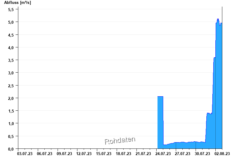 Der Pegel wird durch Baumaßnahmen unterhalb beeinflusst (Rückstau). Entsprechend sind die Abflusswerte nicht korrekt