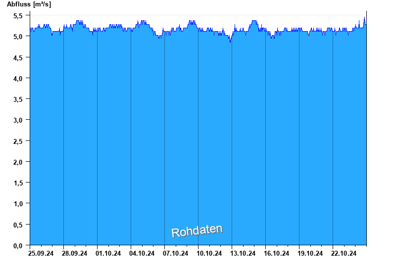 Der Pegel wird durch Baumaßnahmen unterhalb beeinflusst (Rückstau). Entsprechend sind die Abflusswerte nicht korrekt