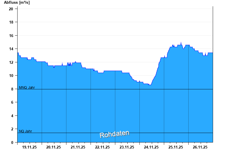 - Mittlerer Niedrigwasserabfluss MNQ 7,97 m³/s