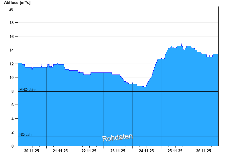- Mittlerer Niedrigwasserabfluss MNQ 7,97 m³/s