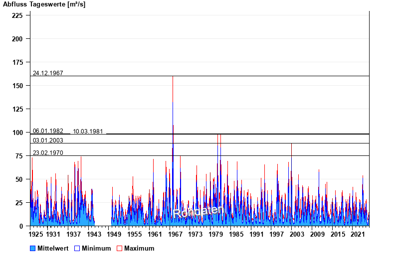 - 23.02.1970 Abfluss: 75 m³/s