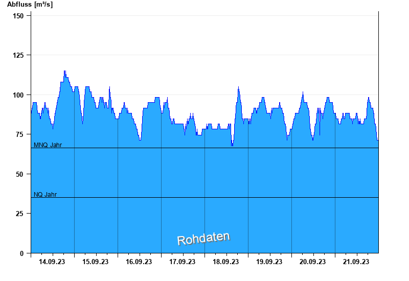 - Mittlerer Niedrigwasserabfluss MNQ 66,4 m³/s