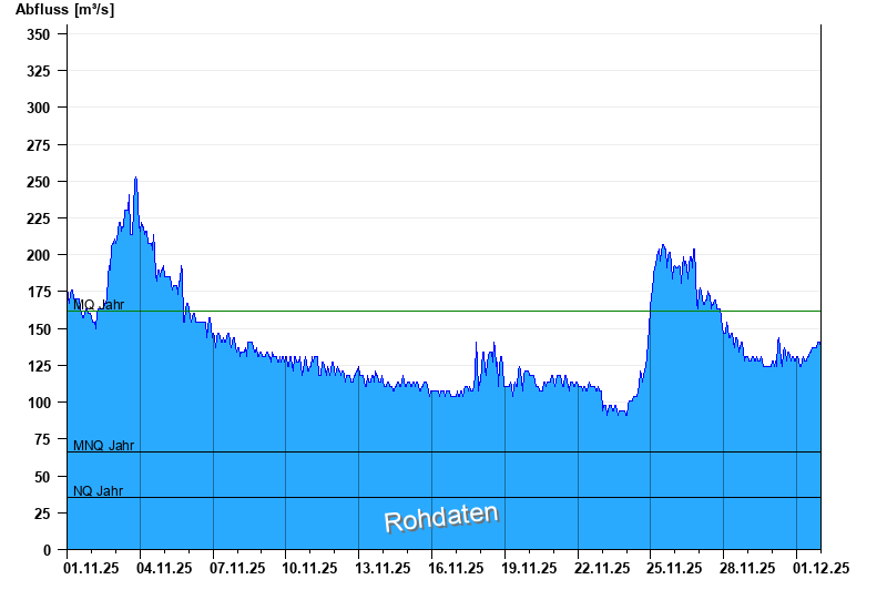 - Mittlerer Niedrigwasserabfluss MNQ 66,4 m³/s