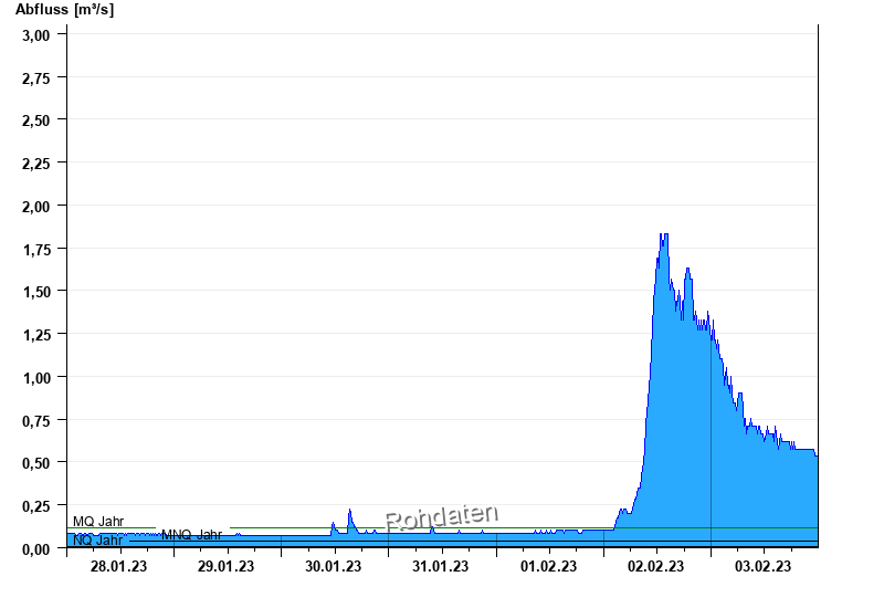 - Mittlerer Niedrigwasserabfluss MNQ 0,036 m³/s