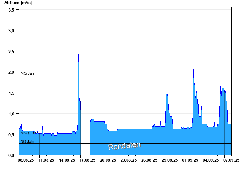 - Niedrigwasserabfluss NQ 0,282 m³/s