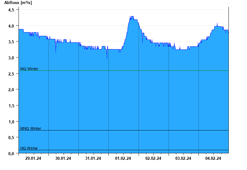 - Mittlerer Niedrigwasserabfluss MNQ 0,715 m³/s