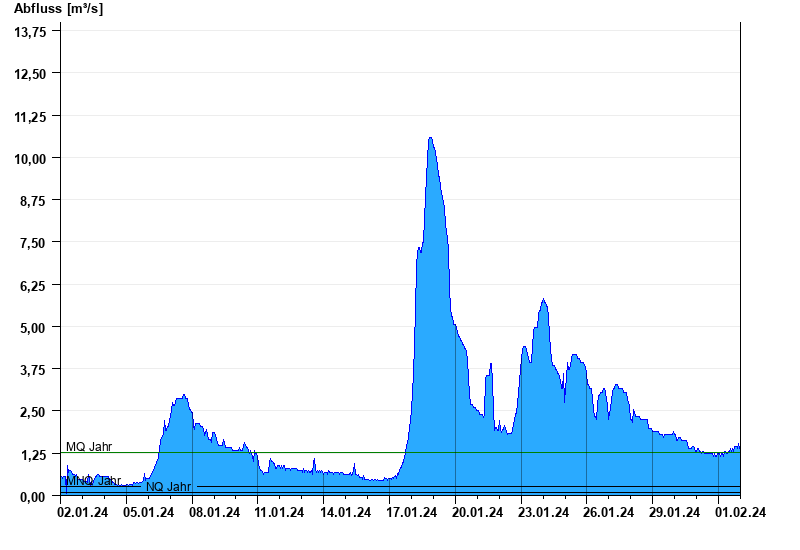- Mittlerer Niedrigwasserabfluss MNQ 0,267 m³/s