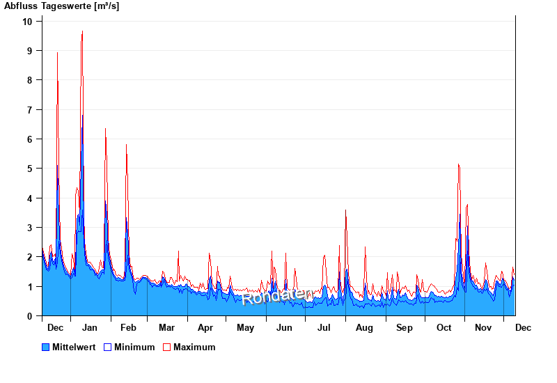- Mittlerer Niedrigwasserabfluss MNQ m³/s