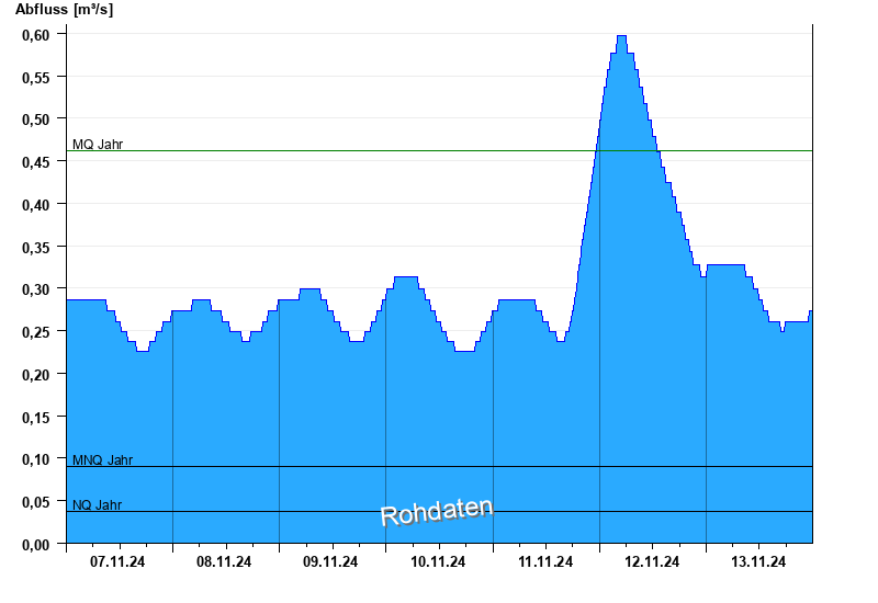 - Mittlerer Niedrigwasserabfluss MNQ 0,09 m³/s