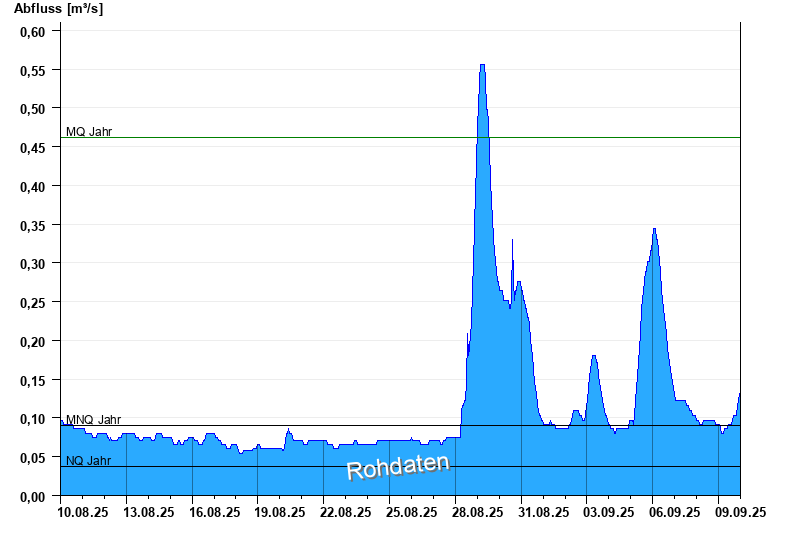 - Mittlerer Niedrigwasserabfluss MNQ 0,09 m³/s