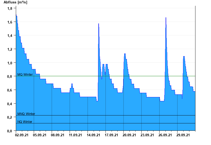 - Mittlerer Niedrigwasserabfluss MNQ 0,226 m³/s