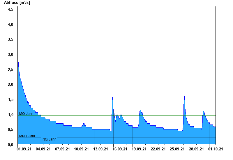 - Mittlerer Niedrigwasserabfluss MNQ 0,215 m³/s