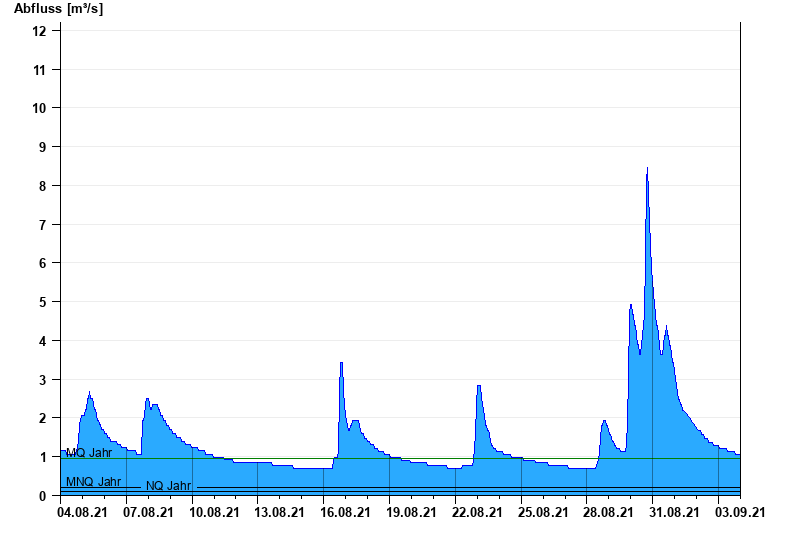 - Mittlerer Niedrigwasserabfluss MNQ 0,215 m³/s