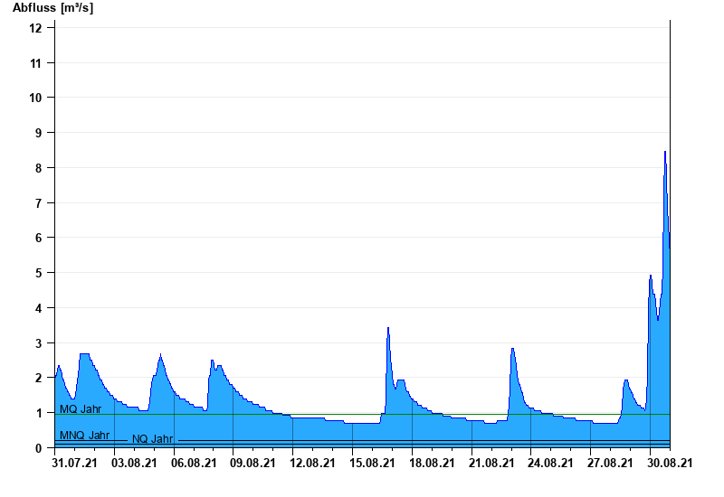 - Mittlerer Niedrigwasserabfluss MNQ 0,215 m³/s