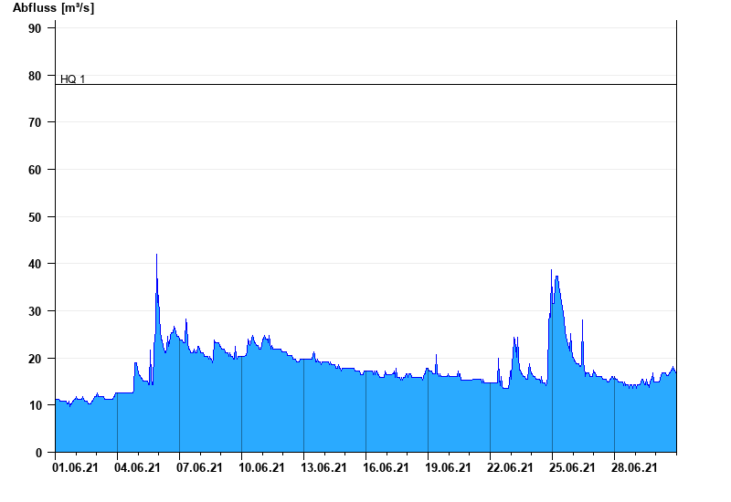 Messwerte beeinflusst durch Kraftwerkssteuerung und Kiesumlagerungen. Kiesanlandungen können bei Niedrigwasser Trockenlegung der Messinstrumente bewirken.