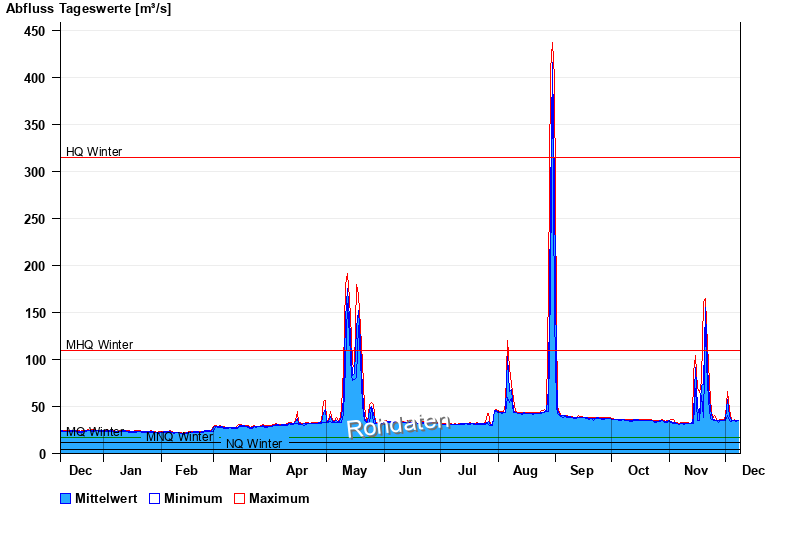 - Mittlerer Niedrigwasserabfluss MNQ 12,2 m³/s