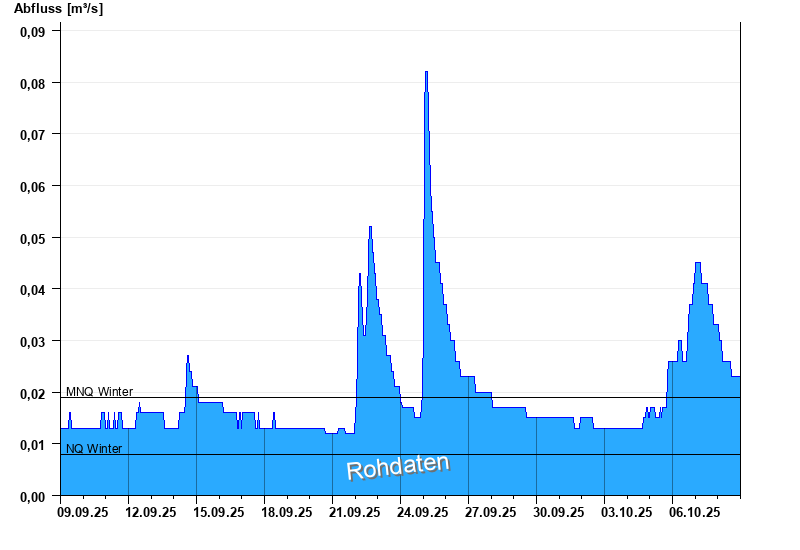 - Mittlerer Niedrigwasserabfluss MNQ 0,019 m³/s