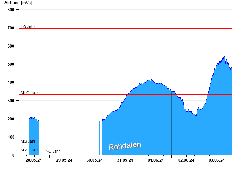 - Mittlerer Hochwasserabfluss MHQ 332 m³/s