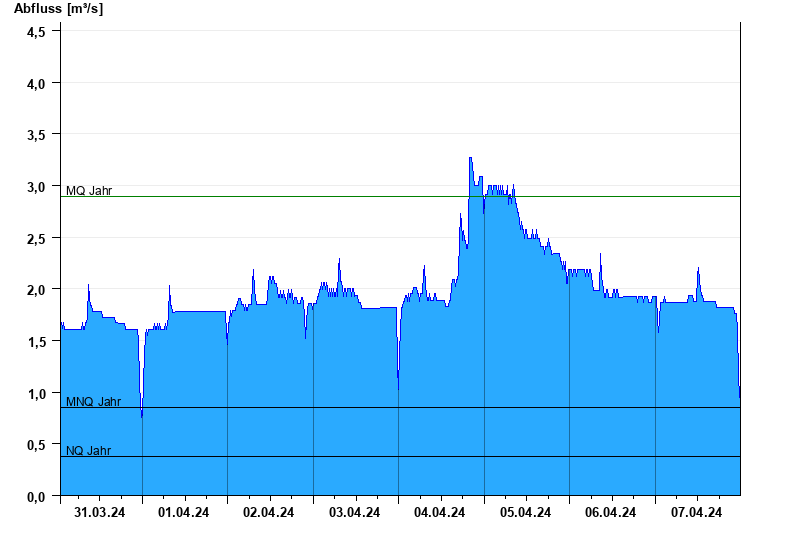 - Mittlerer Niedrigwasserabfluss MNQ 0,847 m³/s