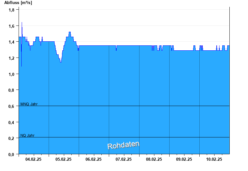- Mittlerer Niedrigwasserabfluss MNQ 0,6 m³/s
