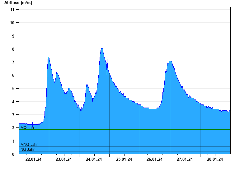 - Mittlerer Niedrigwasserabfluss MNQ 0,6 m³/s