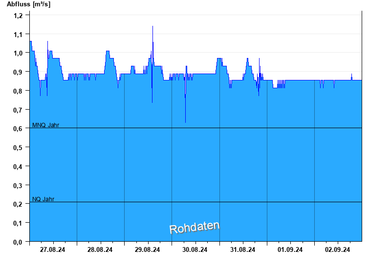 - Mittlerer Niedrigwasserabfluss MNQ 0,6 m³/s