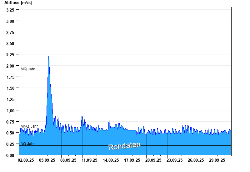 - Mittlerer Niedrigwasserabfluss MNQ 0,6 m³/s
