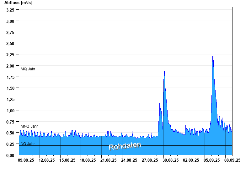 - Mittlerer Niedrigwasserabfluss MNQ 0,6 m³/s
