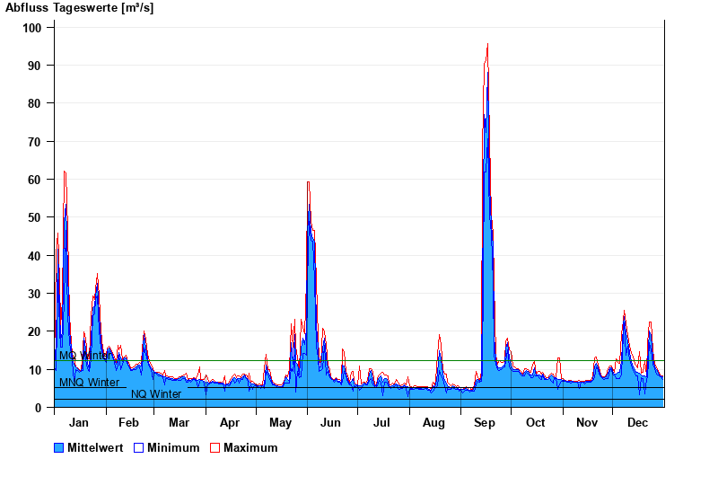 - Mittlerer Niedrigwasserabfluss MNQ 5,26 m³/s
