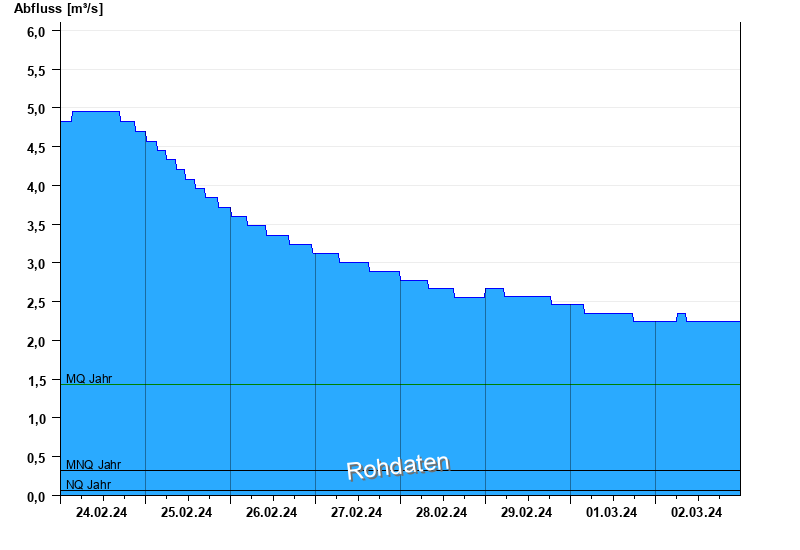 - Mittlerer Niedrigwasserabfluss MNQ 0,325 m³/s
