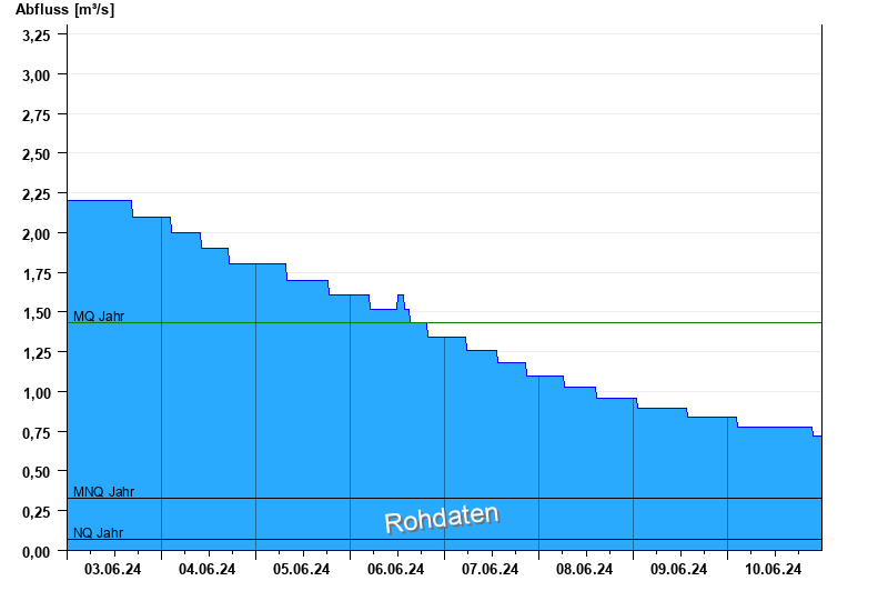 - Mittlerer Niedrigwasserabfluss MNQ 0,325 m³/s