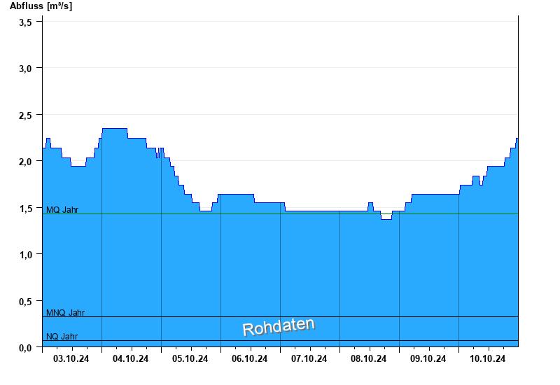 - Mittlerer Niedrigwasserabfluss MNQ 0,325 m³/s