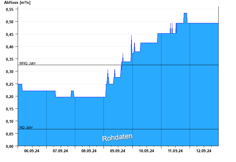 - Mittlerer Niedrigwasserabfluss MNQ 0,325 m³/s
