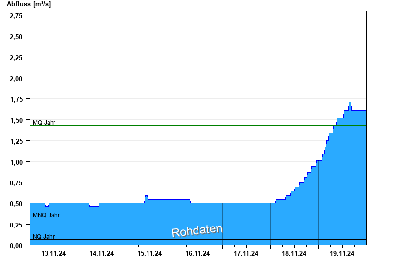 - Mittlerer Niedrigwasserabfluss MNQ 0,325 m³/s