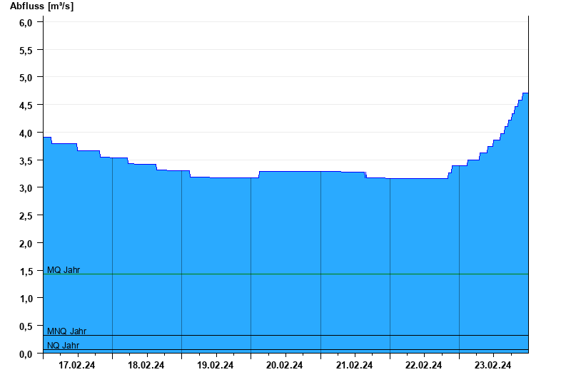 - Mittlerer Niedrigwasserabfluss MNQ 0,325 m³/s