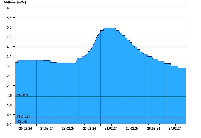 - Mittlerer Niedrigwasserabfluss MNQ 0,325 m³/s
