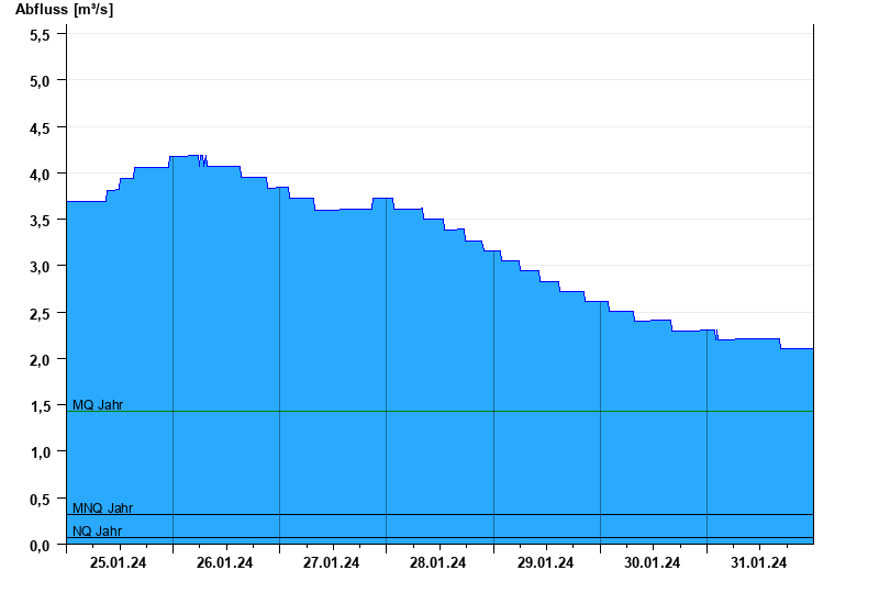 - Mittlerer Niedrigwasserabfluss MNQ 0,325 m³/s