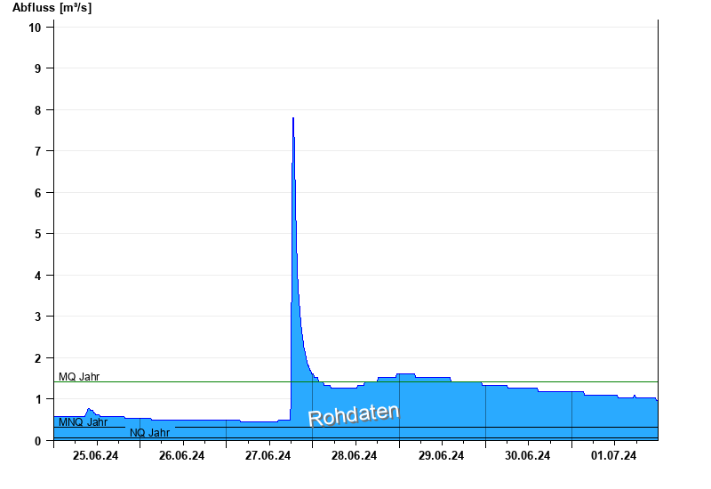 - Mittlerer Niedrigwasserabfluss MNQ 0,325 m³/s