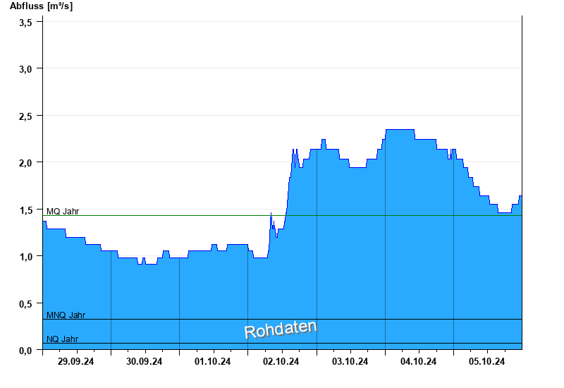 - Mittlerer Niedrigwasserabfluss MNQ 0,325 m³/s