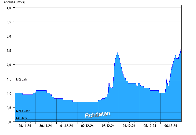- Mittlerer Niedrigwasserabfluss MNQ 0,325 m³/s
