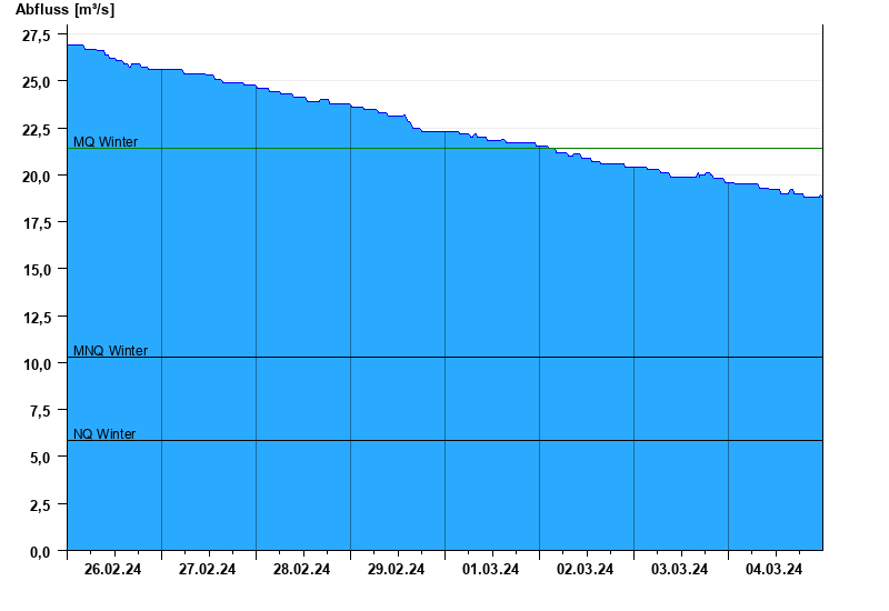 - Mittlerer Niedrigwasserabfluss MNQ 10,3 m³/s