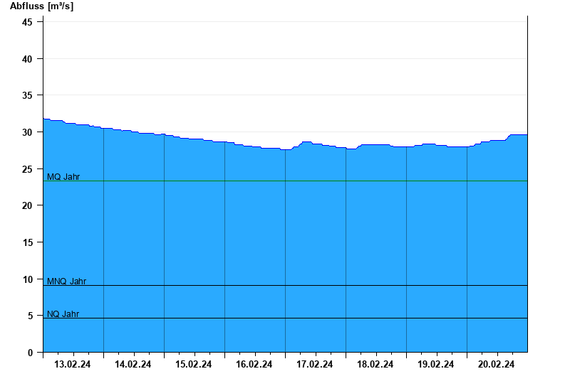 - Mittlerer Niedrigwasserabfluss MNQ 9,1 m³/s