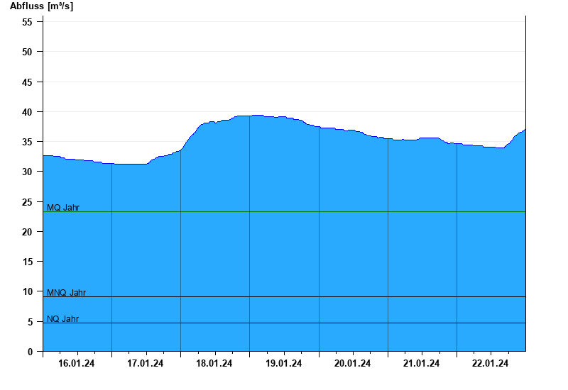 - Mittlerer Niedrigwasserabfluss MNQ 9,1 m³/s