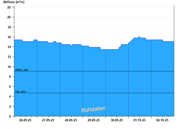 - Mittlerer Niedrigwasserabfluss MNQ 9,1 m³/s