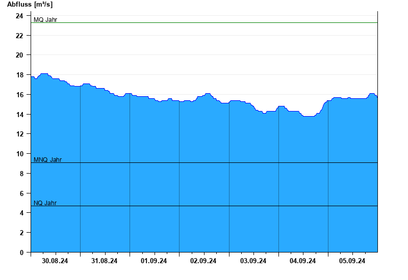 - Mittlerer Niedrigwasserabfluss MNQ 9,1 m³/s