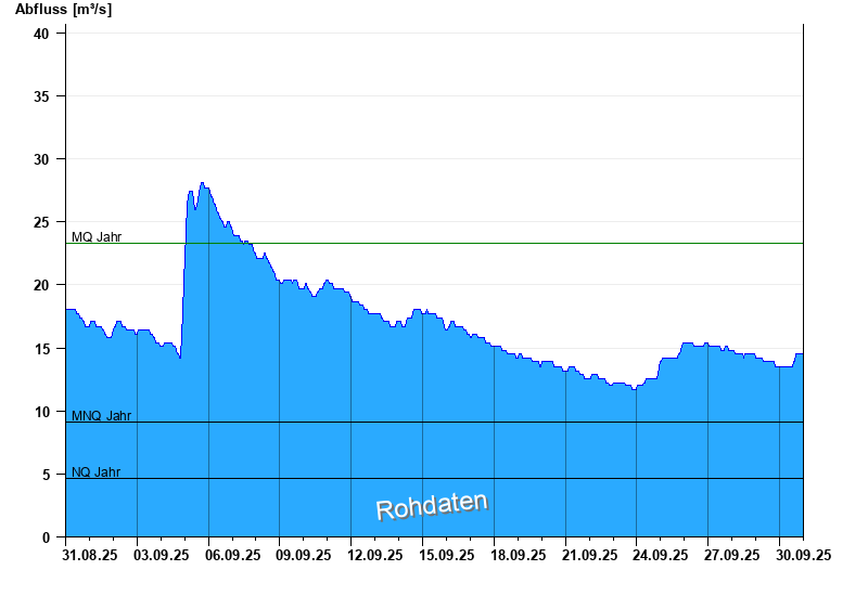- Mittlerer Niedrigwasserabfluss MNQ 9,1 m³/s