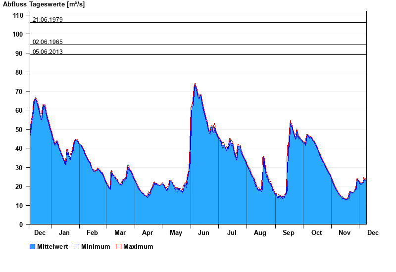 - 21.06.1979 Abfluss: 106 m³/s