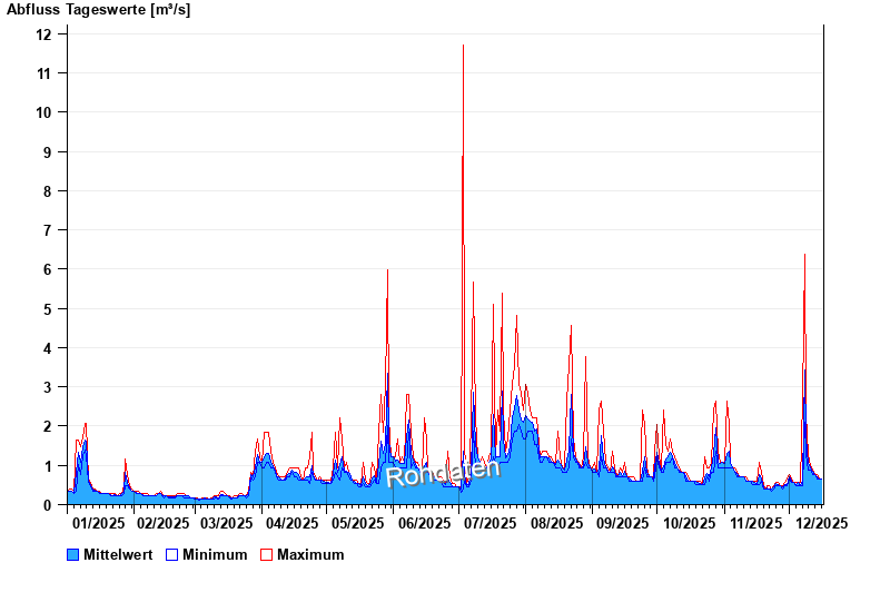 | Date | Mean value [m³/s] | Maximum [m³/s] | Minimum [m³/s] |