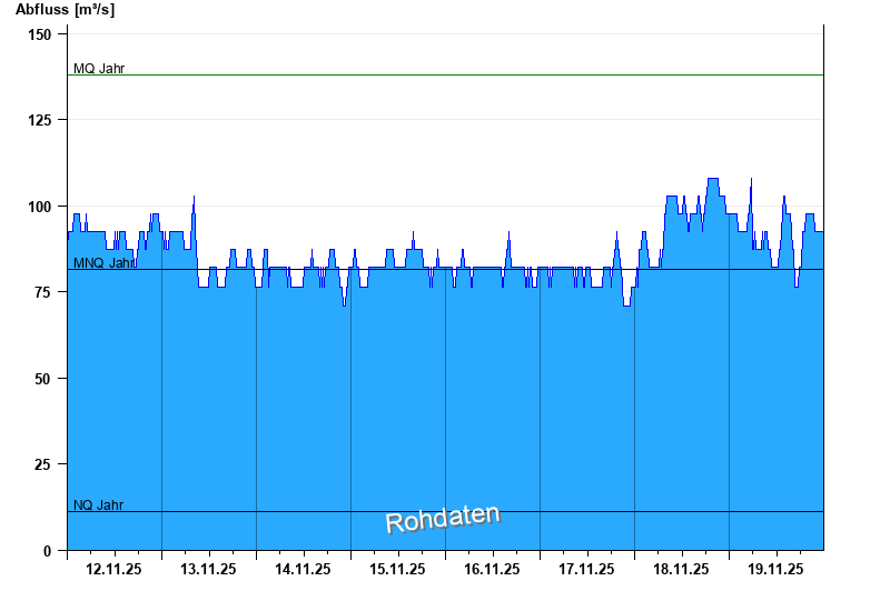 - Mittlerer Niedrigwasserabfluss MNQ 81,7 m³/s