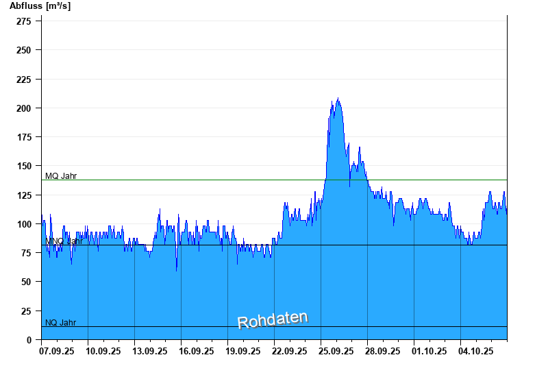 - Mittlerer Niedrigwasserabfluss MNQ 81,7 m³/s